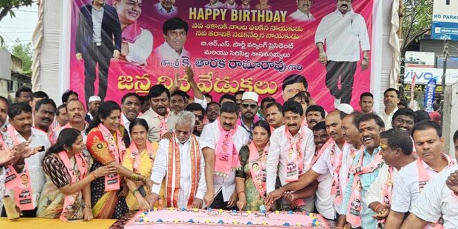 మాజీ మంత్రివర్యులు, బీ.ఆర్.ఎస్. పార్టీ వర్కింగ్ ప్రెసిడెంట్ శ్రీ కల్వకుంట్ల తారక రామారావు గారి జన్మదినాన్ని పురస్కరించుకొని కరీంనగర్లో బీ.ఆర్.ఎస్. పార్టీ శ్రేణులు భారీ ఎత్తున వేడుకలు నిర్వహించాయి. గురువారం తెలంగాణ చౌక్ వద్ద బీ.ఆర్.ఎస్. పార్టీ నగర అధ్యక్షుడు చల్ల హరిశంకర్ గారి ఆధ్వర్యంలో ఈ వేడుకలు ఘనంగా జరిగాయి.
